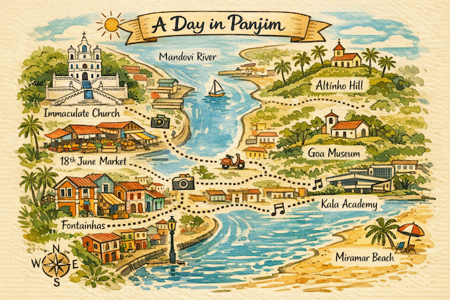 Goa has its own unique charms—be it the colourful Latin quarters of Fontainhas with blooming bougainvillea, its sandy beaches, or drool-worthy Goan delicacies like sossé dora and pineapple sukku. With so many attractions, a first-time visitor can easily feel overwhelmed. From North and South Goa to Panjim and Old Goa, there is so much to see. To help you navigate it all, here is a brief itinerary to help you get the best out of Goa.