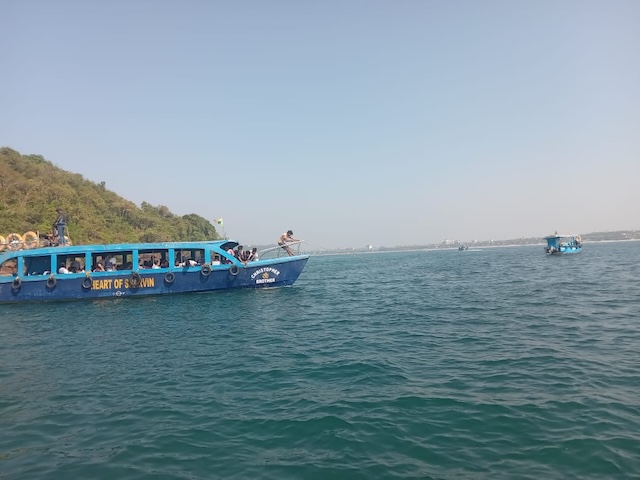 We headed to Baina Beach – a small, scenic beach located near Vasco de Gama in South Goa, close to the port and ferry area.Here we had already booked the Scuba driving activity and we headed out. The boat took us to an island closely for scuba diving. An instructor explained to us the basics, made us comfortable and then it was 2-3 minute under water dive. A 1 minute video was included in the package and so what with hello, hi,getting comfortable with the swim gears and touching the corals, seeing fishes -the day went by. After lunch we headed out to Naval museum– the only one of its kind at Vasco de Gama city. Spread over a spacious area near the Dabolim Airport, it showcases aircraft, helicopters, and naval equipment used by the Indian Navy.