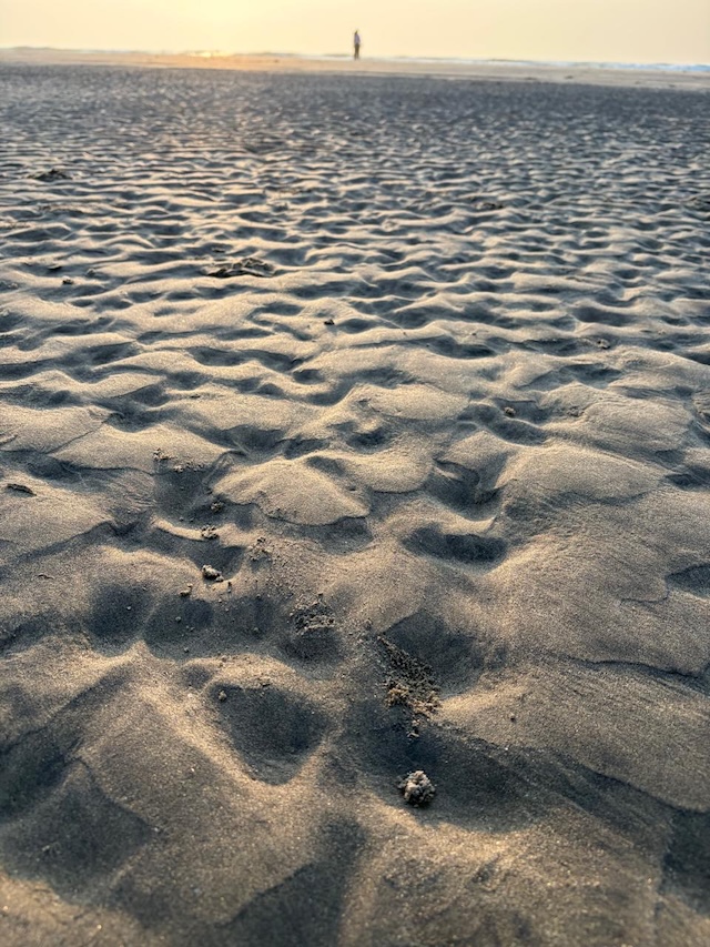 This creates a sheet of water that moves back and forth near the coast.After the breaking of the waves near the shore, the water flows calmly over the flat sand, creating a playful shallow stretch. It becomes a paddling ground. And is an ideal place to have fun for kids. This is also why the beach is suitable for turtle nesting — gentle slopes make it easier for Olive Ridleys to come ashore.